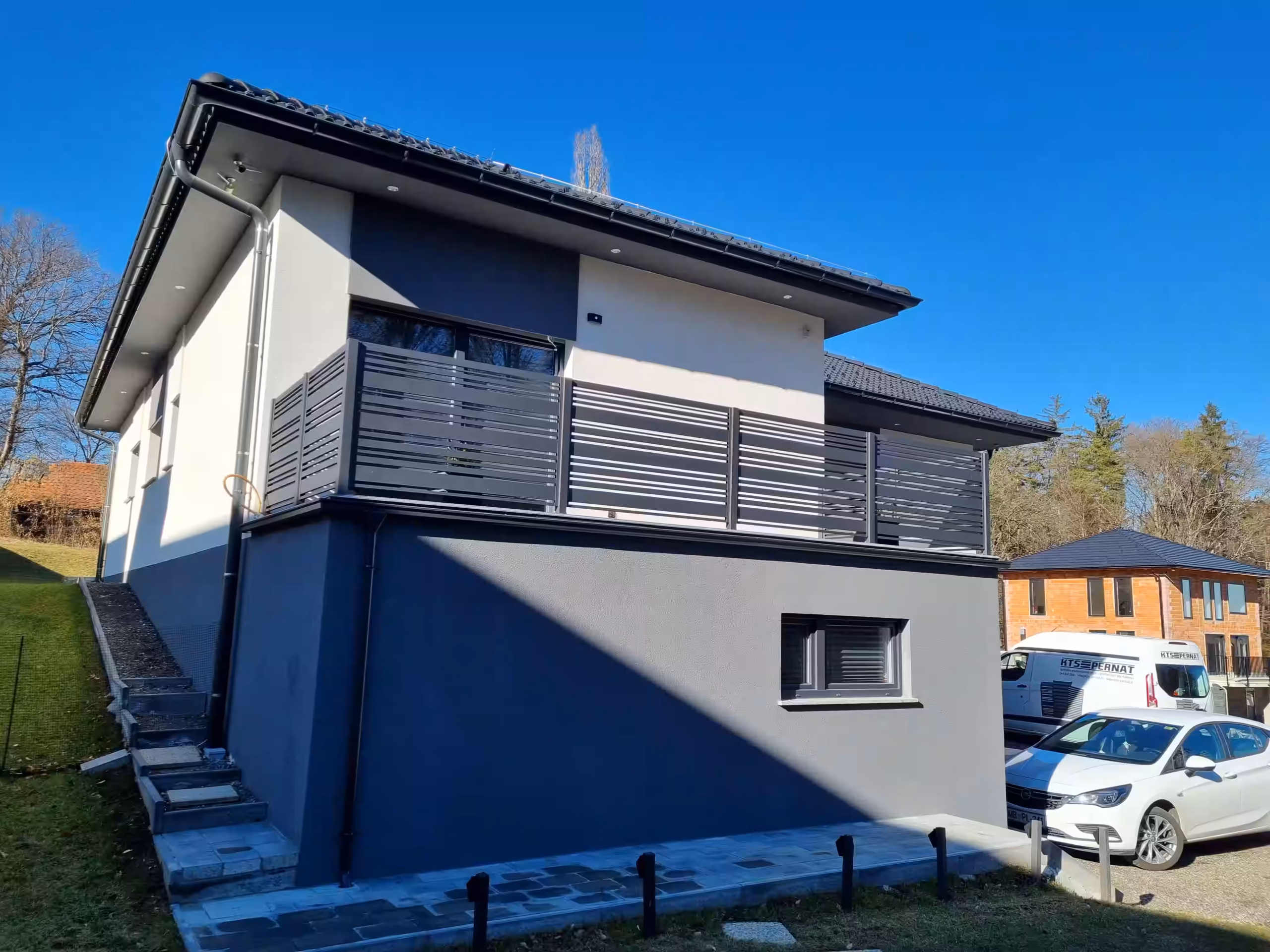Ograja je izvedena v horizontalni ali vertikalni postavitvi, pri čemer se izmenjujejo širši in ožji profili. Takšna zasnova ustvari prepoznaven videz in jasno strukturo, ki ograjo loči od klasičnih enakomernih izvedb. Hkrati omogoča primerno stopnjo zasebnosti ter učinkovito zaščito parcele.