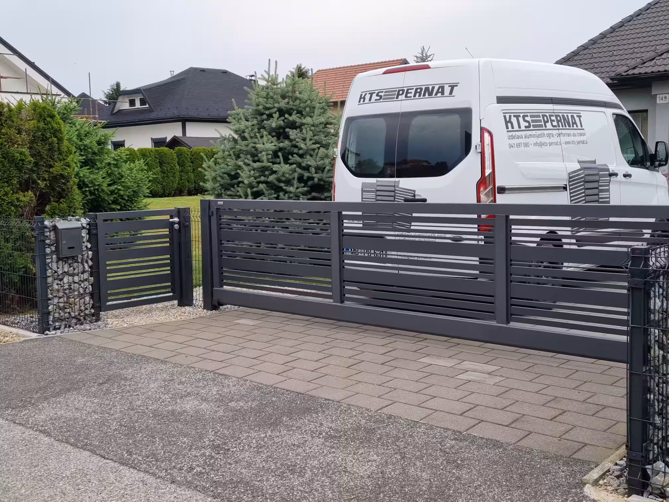Model Coda omogoča tudi izvedbo z integriranimi osebnimi ali drsnimi vrati za avtomobil, s čimer se celoten vhod na parcelo oblikovno uskladi. Barvna izvedba je mogoča po RAL lestvici, med najpogostejšimi pa so siva, antracit in rjava, kar omogoča enostavno prilagoditev objektu in okolici.
